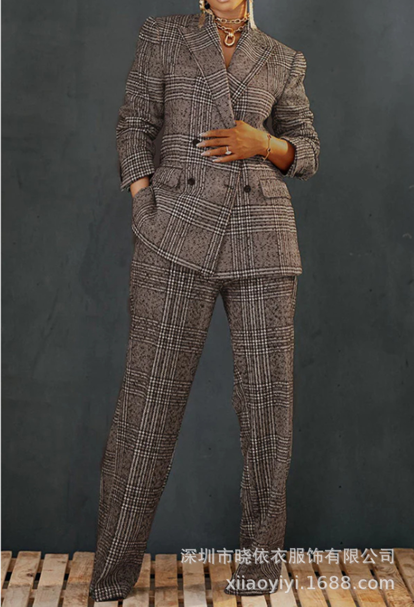 بدلة نسائية من قطعتين بنمط جاكيت وبنطال فضفاض