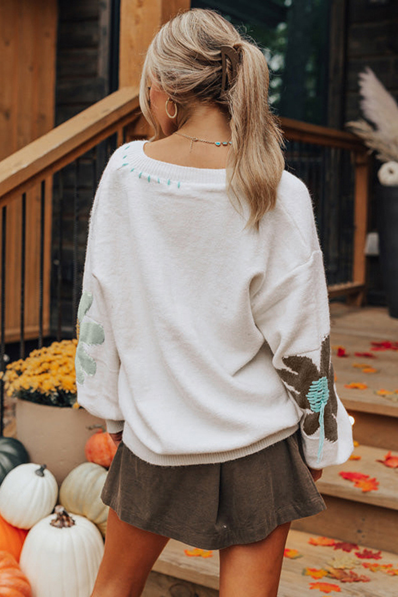 بلوزة نسائية محبوكة بفتحة رقبة على شكل حرف V، سترة أوروبية وأمريكية مريحة مزينة بالزهور