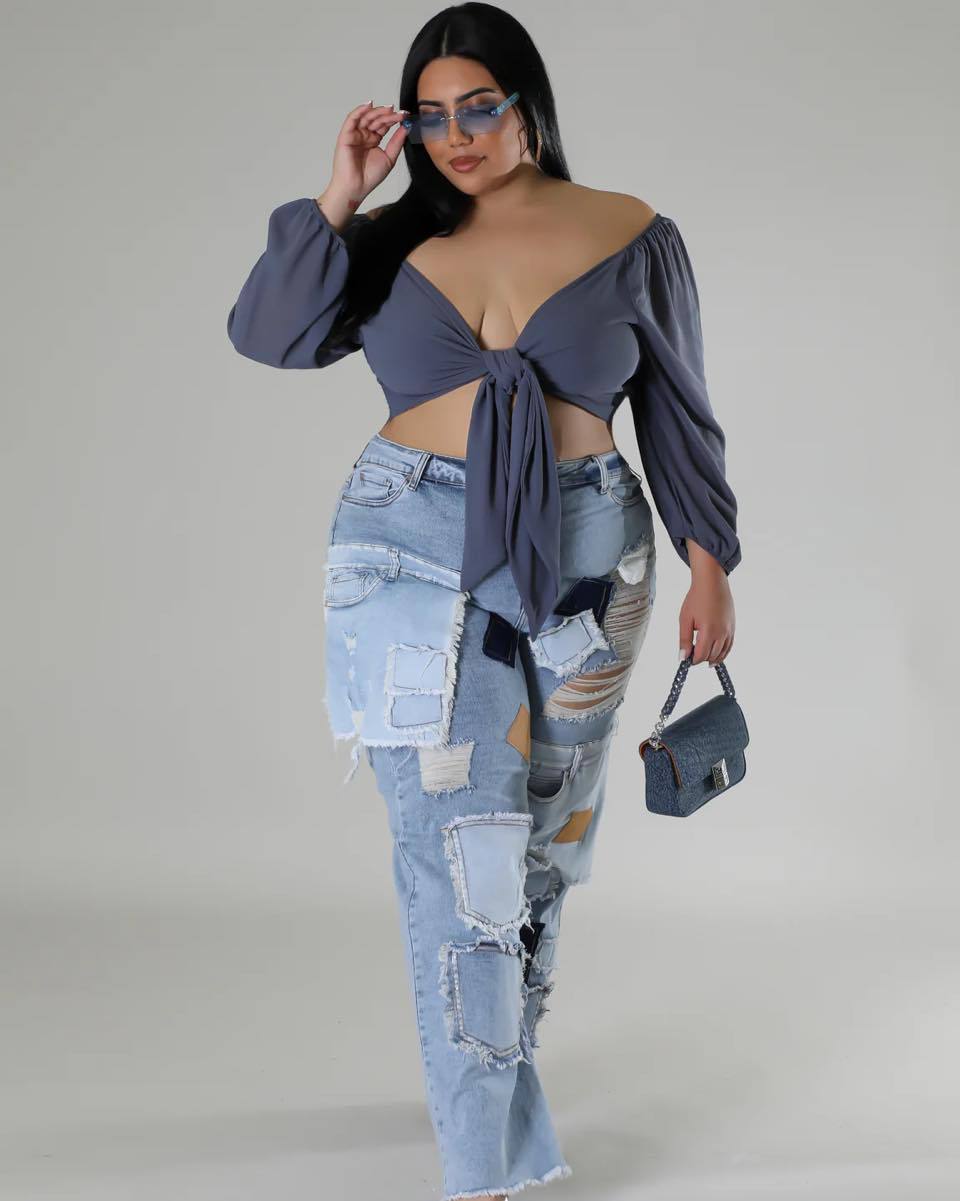 بنطال جينز كاجوال بقصّة مستقيمة وثقوب مطبوعة